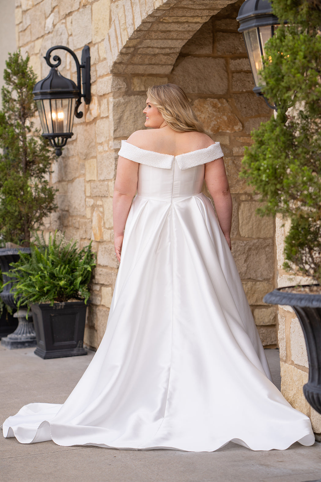 Introducing the Sydney's Closet MB2610, an exquisite ivory gown designed to make you feel absolutely radiant. This stunning A-line dress features a romantic sweetheart neckline and elegant off-the-shoulder straps with an elastic band for a secure, graceful fit. Adorned with intricate bugle beads, lustrous pearls, and shimmering clear sequins, the bodice showcases meticulous craftsmanship. The natural waistline is defined by a cincher belt and supported by 13 bones for a flattering silhouette, while box pleats and functional pockets add both style and practicality. Crafted from luxurious mikado satin and fully lined for comfort, this gown features a dramatic 67-inch train, a long invisible center back zipper, and a voluminous crinoline for that picture-perfect moment. This dress is your perfect companion for any formal occasion.