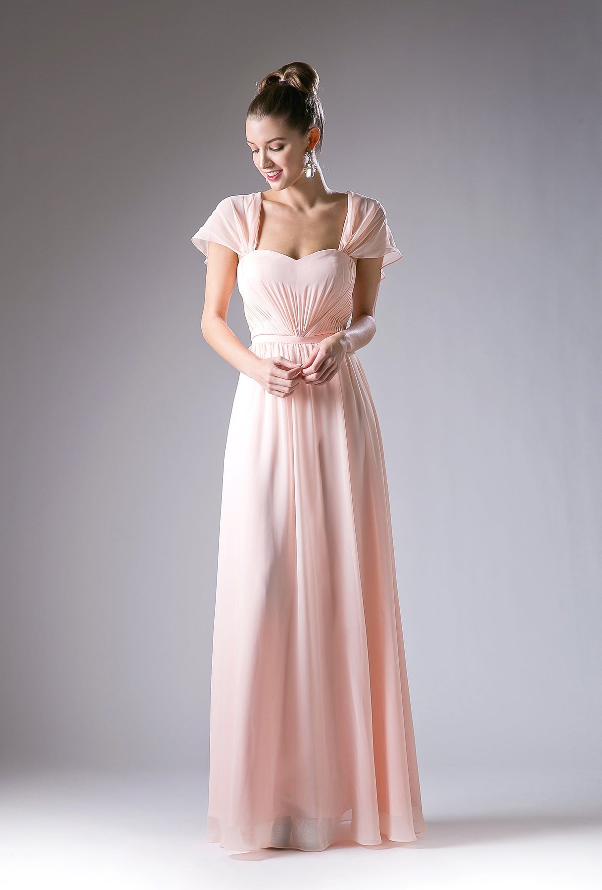 This Short Sleeve Chiffon Gown by Cinderella Divine CH532 is the perfect dress for any special occasion. The lightweight chiffon material offers comfort and elegance, while the short sleeves add a touch of sophistication. Look and feel like royalty in this stunning dress from Cinderella Divine.