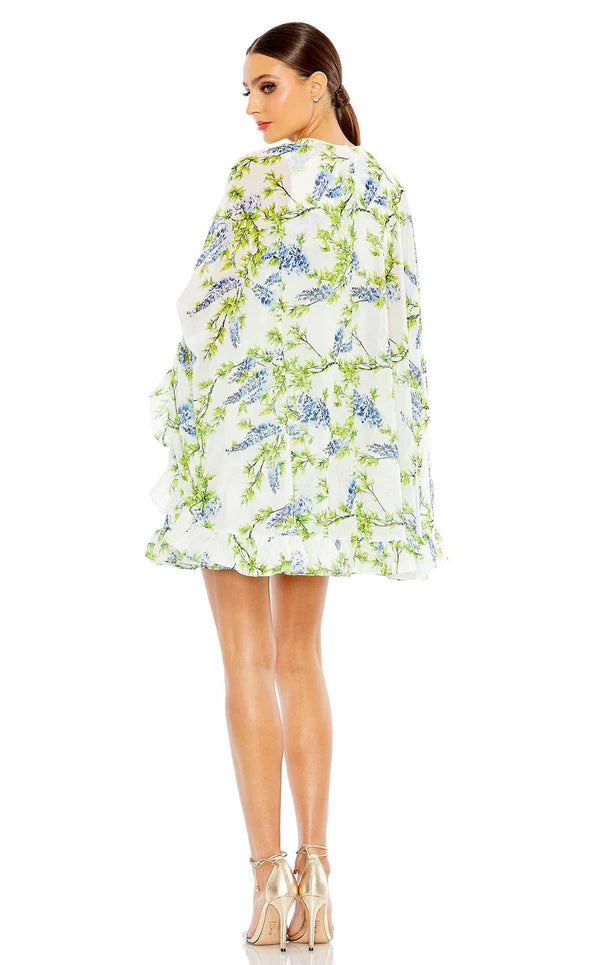 This cape-like confection is a dream come true. The whimsical dress is crafted from billowy floral-print chiffon and boasts a high-fashion look with wing sleeves, pretty ruffle trim and a leggy babydoll length. Glamorous and unique, you’ll be the envy of your friends in this showstopper.