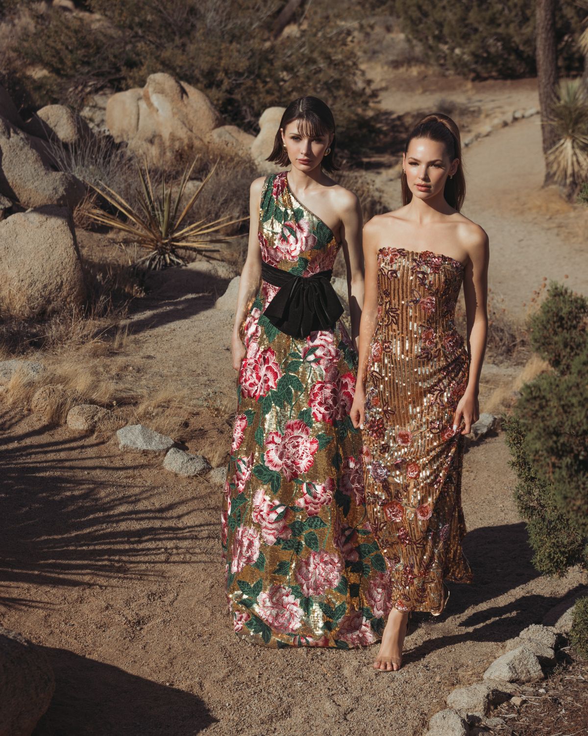 • Gold sequins intricately appliquéd across the fabric