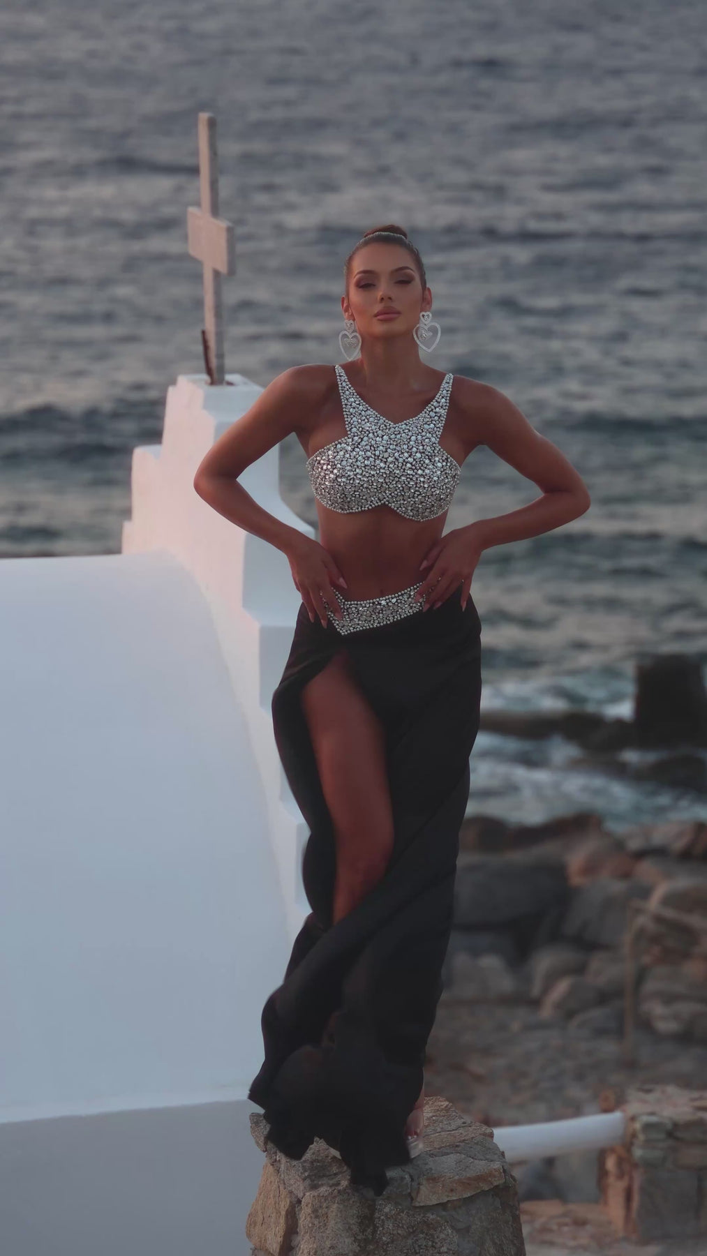 This two-piece set features a sleeveless beaded top that adds a touch of sparkle to your look. Perfect for elegant occasions, its playful design lets you shine while staying comfortable. Mix and match or wear together for a chic, effortless style.