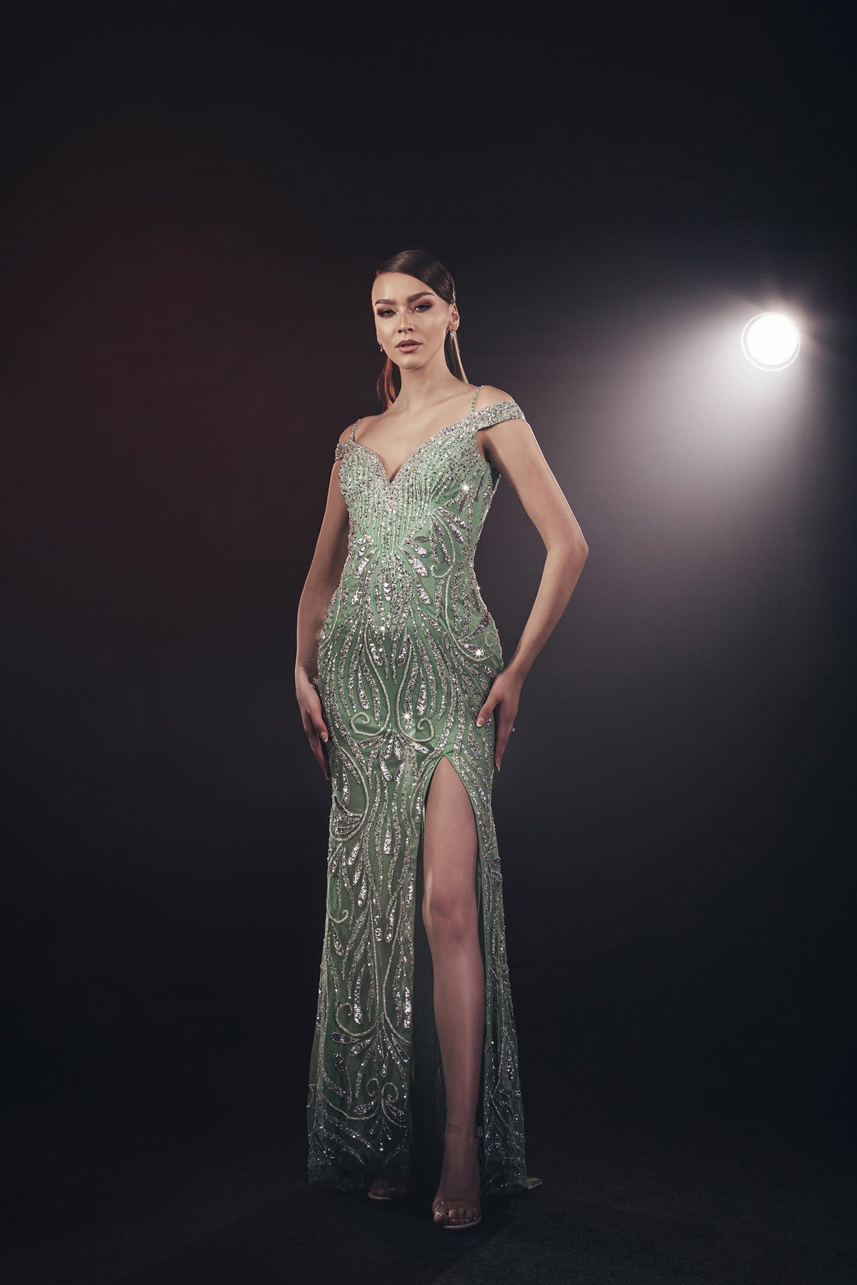 Slip into pure elegance with this stunning sleeveless long dress that's ready to turn heads. Adorned with intricate beading that catches the light beautifully, this showstopper features a daring high slit that adds just the right amount of sass to your sophisticated look. Perfect for galas, weddings, or any occasion where you want to feel absolutely fabulous, this dress combines timeless glamour with modern edge. The flowing silhouette and delicate beadwork create an unforgettable impression that says you've arrived—and you're here to slay.