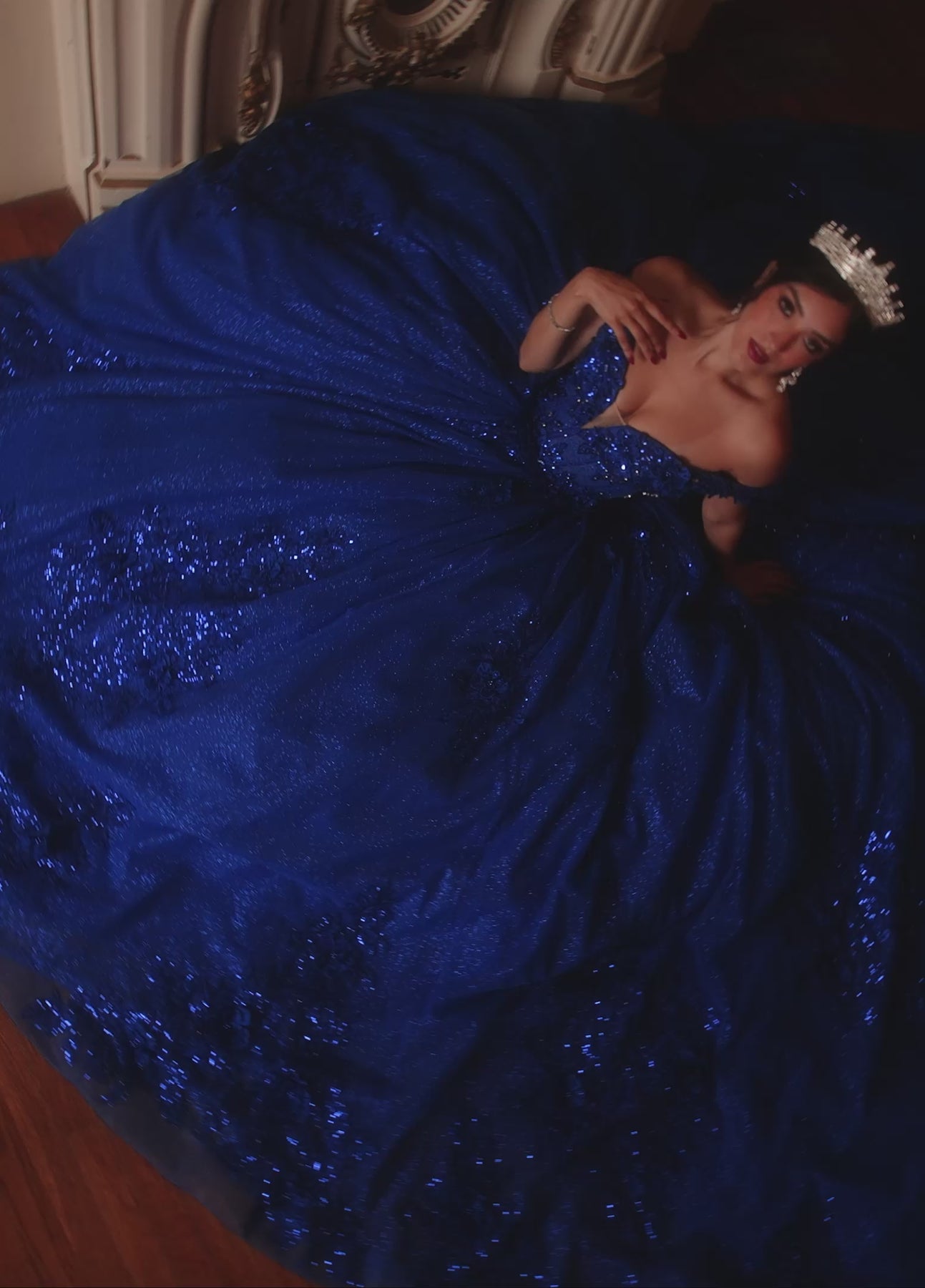 Step into the spotlight with the Rachel Allan RQ2215 Dress, where playful charm meets royal elegance. Its off-the-shoulder neckline and sparkling beaded corset create a dazzling shape, while the glittering tulle skirt dances with 3D floral appliqués. The sweeping train adds a touch of drama, perfect for making grand entrances at quinceañeras or glamorous galas. Feel like a true queen ready to dazzle all night long!