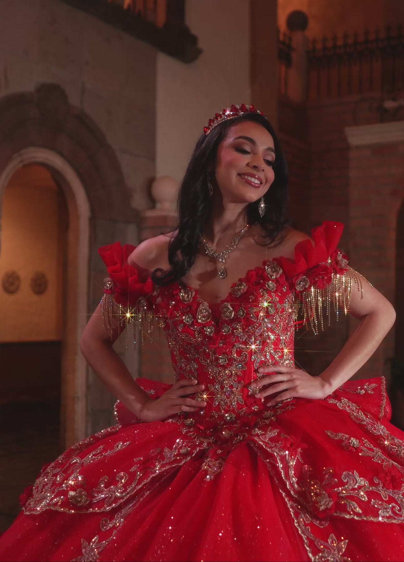 Step into your celebration like royalty with the Rachel Allan RQ3137 Dress. This show-stopping gown dazzles with rich gold embroidery across a bold fabric, making every detail shine. Its sweetheart neckline and flirty off-the-shoulder sleeves add just the right amount of charm, while the full, patterned skirt promises to turn every head. Perfect for the girl ready to sparkle and twirl as the star of her special day!