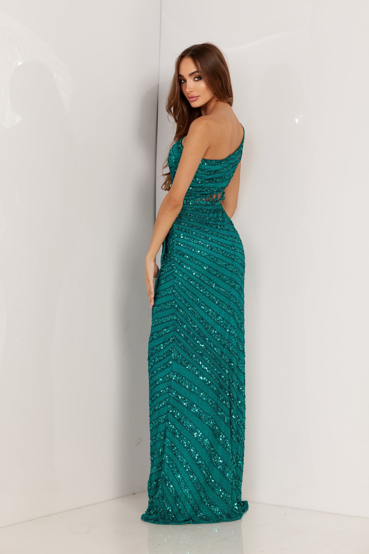 This one-shoulder ALETA 1231 DRESS is the epitome of elegant and sexy. The long beaded dress features a high slit, perfect for showing off your legs. It's sleeveless design adds a touch of sophistication. Heads will turn when you step out in this chic and playful dress!