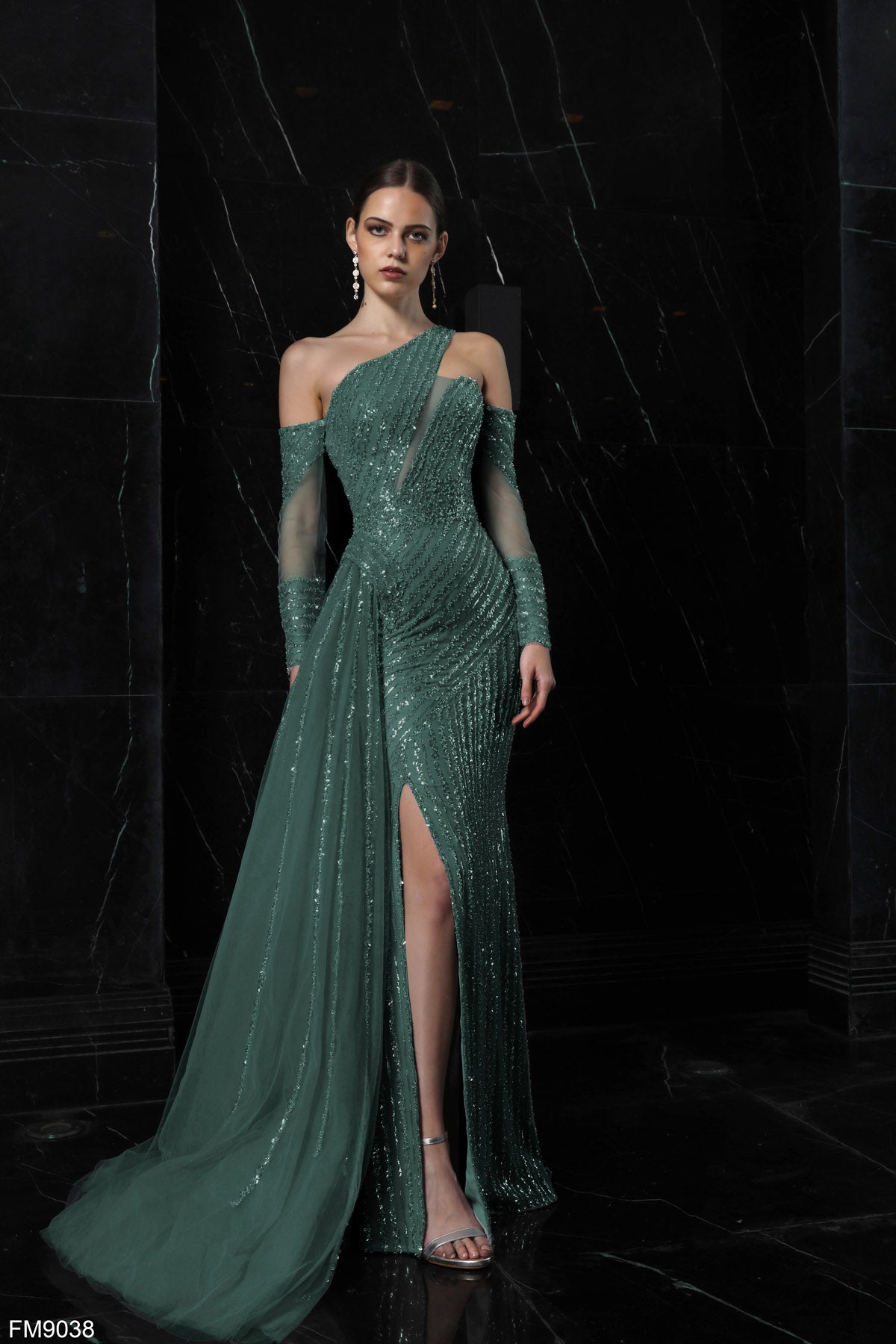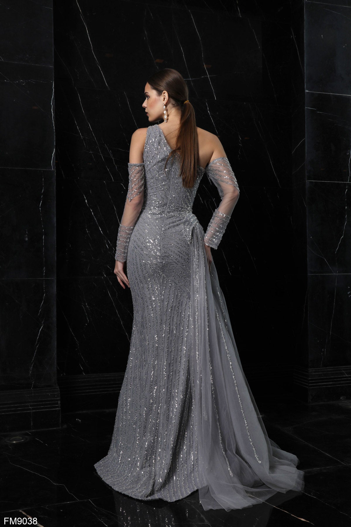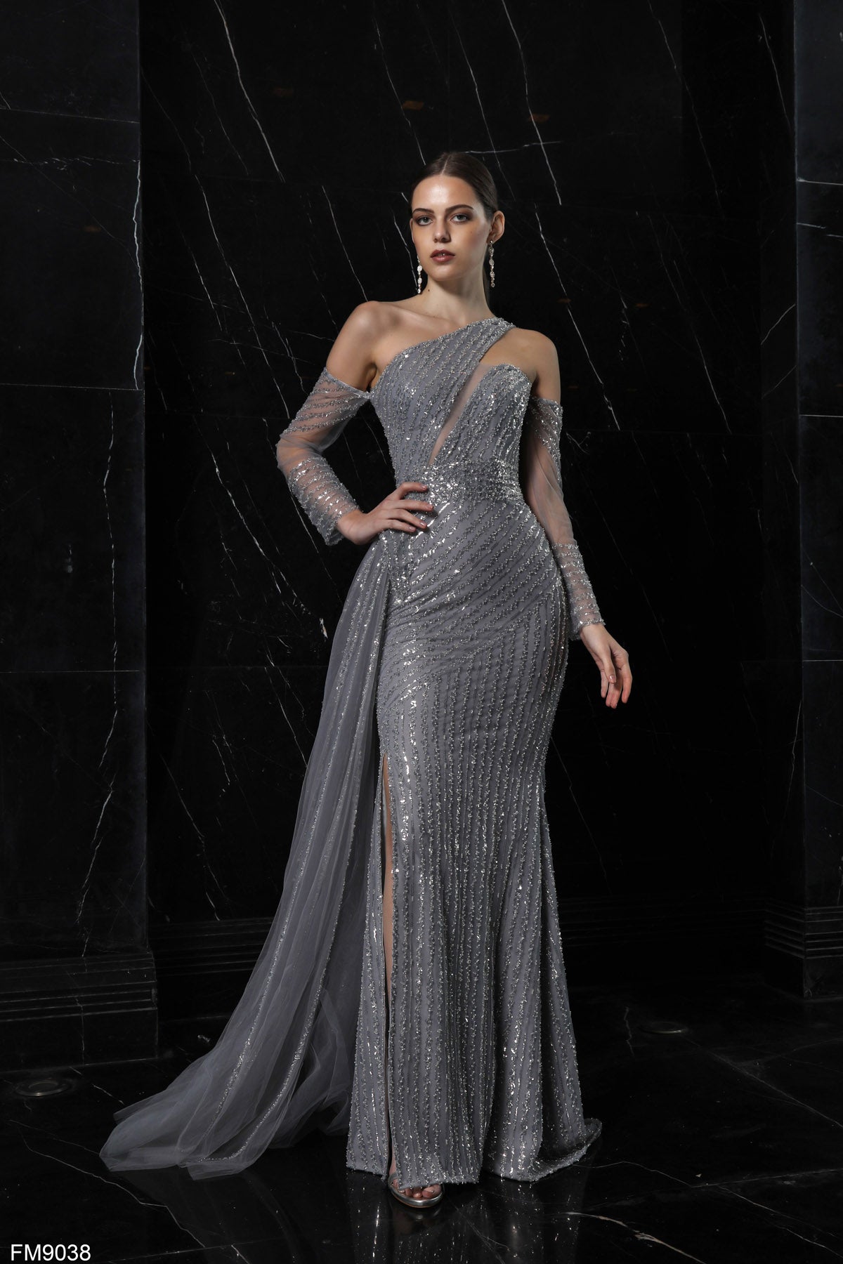 Expertly designed for elegance and style, the AZZURE COUTURE FM9038 Dress is a showstopper. The one shoulder design and sheer beaded detailing create a stunning look, while the long slit and extended side add a touch of sophistication. Perfect for prom, evening occasions, or as a couture choice for the mother of the bride.