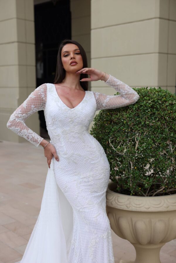 Elevate your evening wardrobe with this stunning long dress that effortlessly blends sophistication with modern flair. Featuring graceful long sleeves and a flattering V-neckline, this piece is designed to make you feel absolutely fabulous. The flowing silhouette drapes beautifully, creating an elegant look that's perfect for special occasions, formal events, or whenever you want to turn heads. Whether you're attending a gala or a night out, this dress delivers timeless charm with just the right touch of contemporary style. Slip into elegance and let your confidence shine through.
