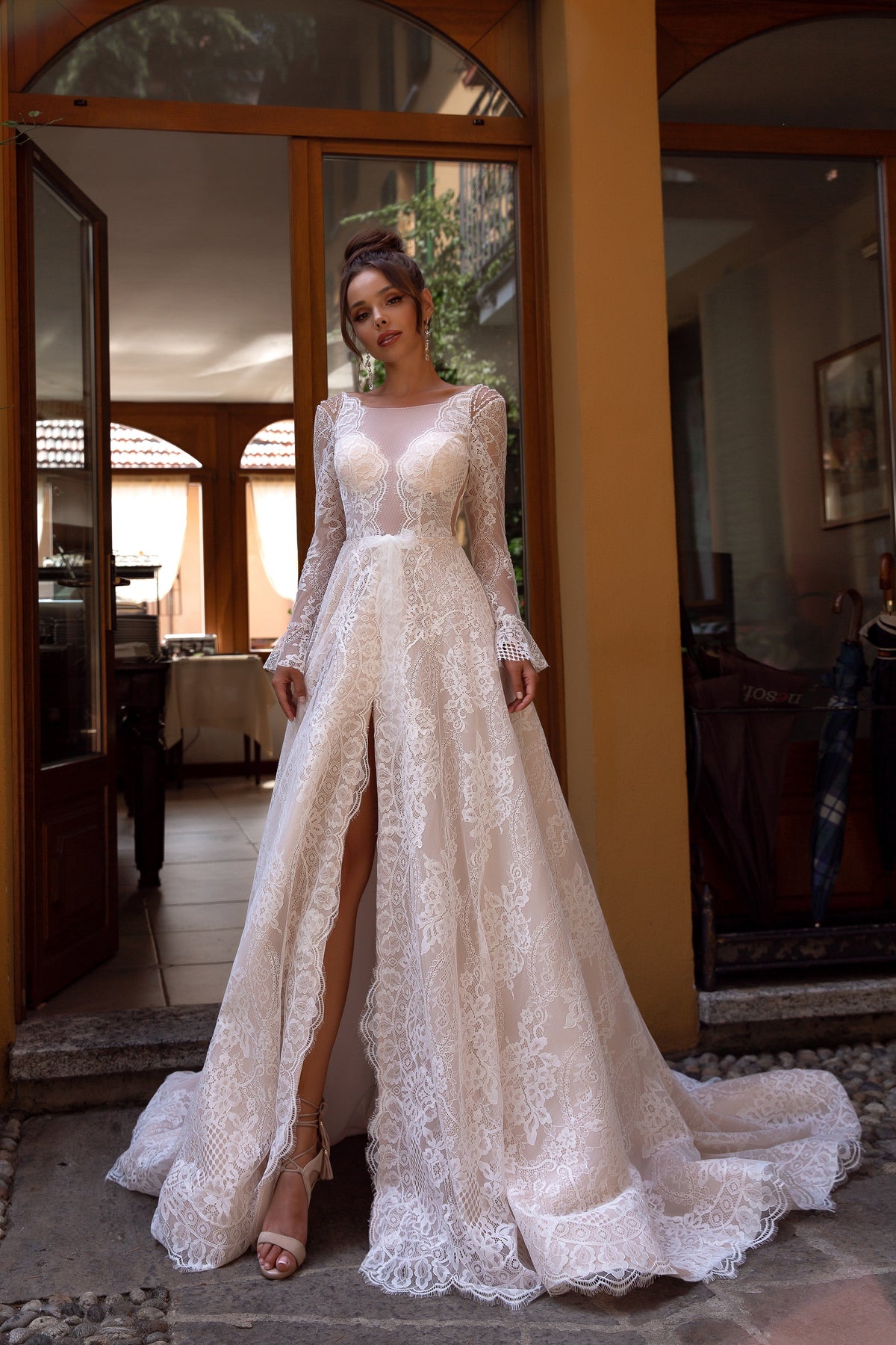 The Maria Anette 5021 is your ticket to turning heads and stealing hearts. This stunning long dress combines timeless elegance with a modern edge—think floor-length sophistication meets that daring high slit that says "I'm confident and fabulous." The long sleeves add an air of refined grace, perfect for brides who want to feel both classic and contemporary. Whether you're walking down the aisle or making a grand entrance at a formal event, this dress delivers the wow factor with playful charm. Elegance never looked so good.