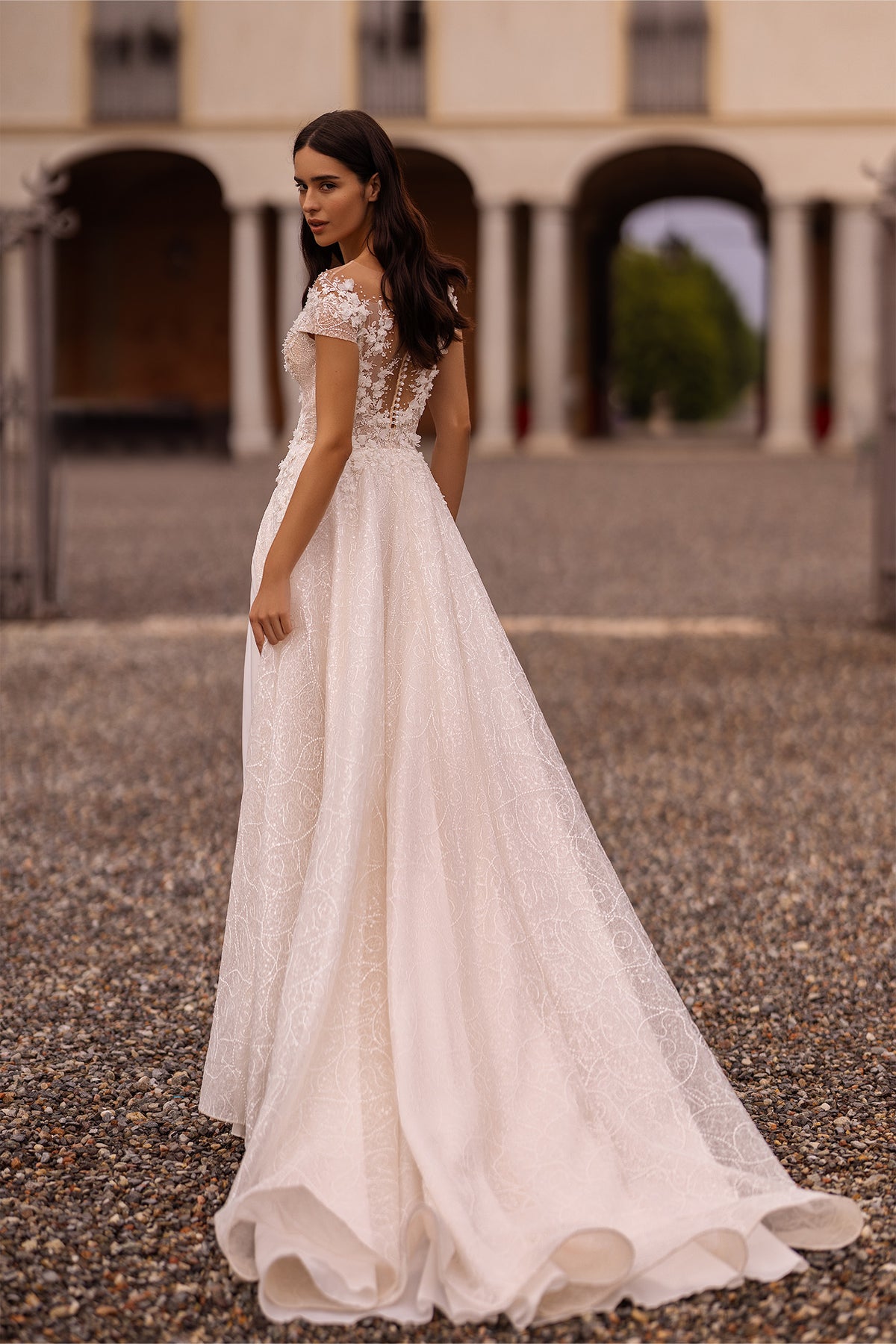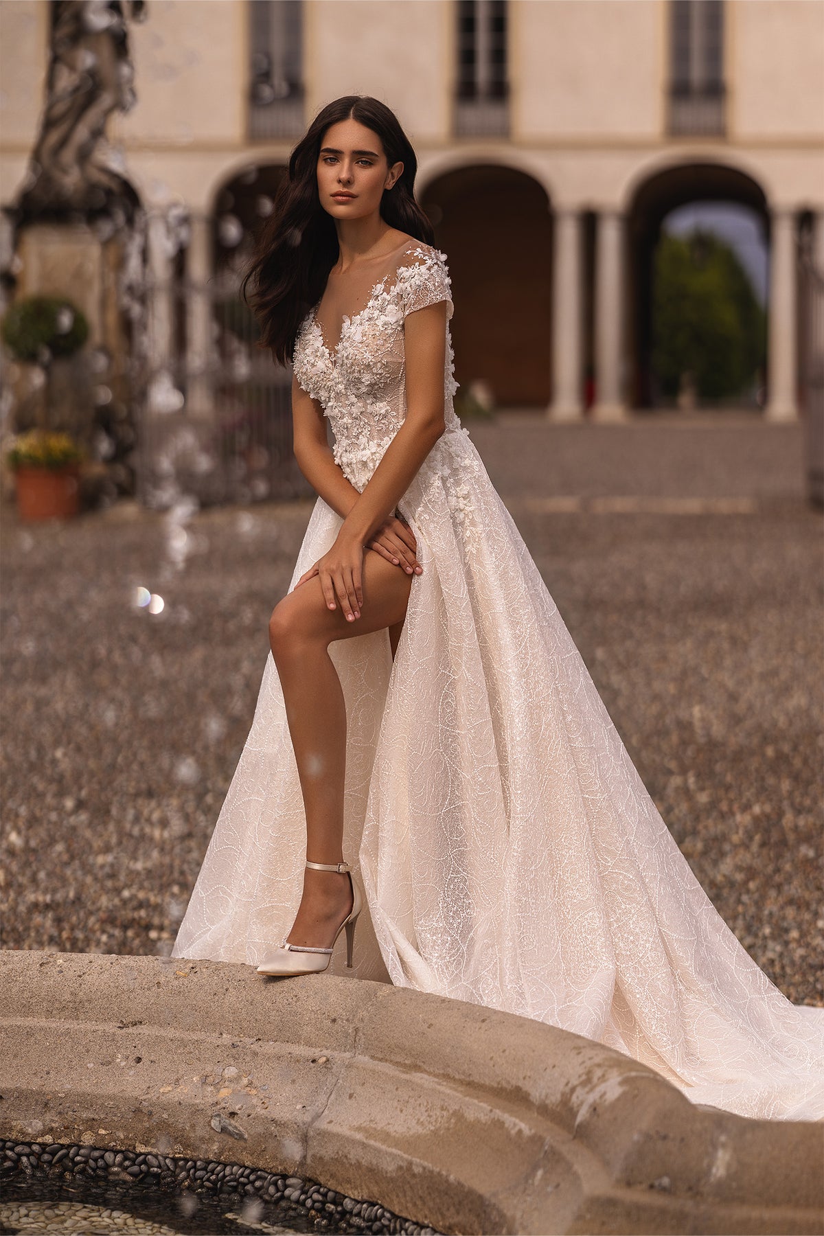 Introducing MARIA ANETTE 5524, the perfect dress for brides looking for a stunning, elegant look. Featuring a high slit and v neckline, this long dress is sleeveless and exudes confidence. Make a statement on your special day with this beautiful and timeless piece.