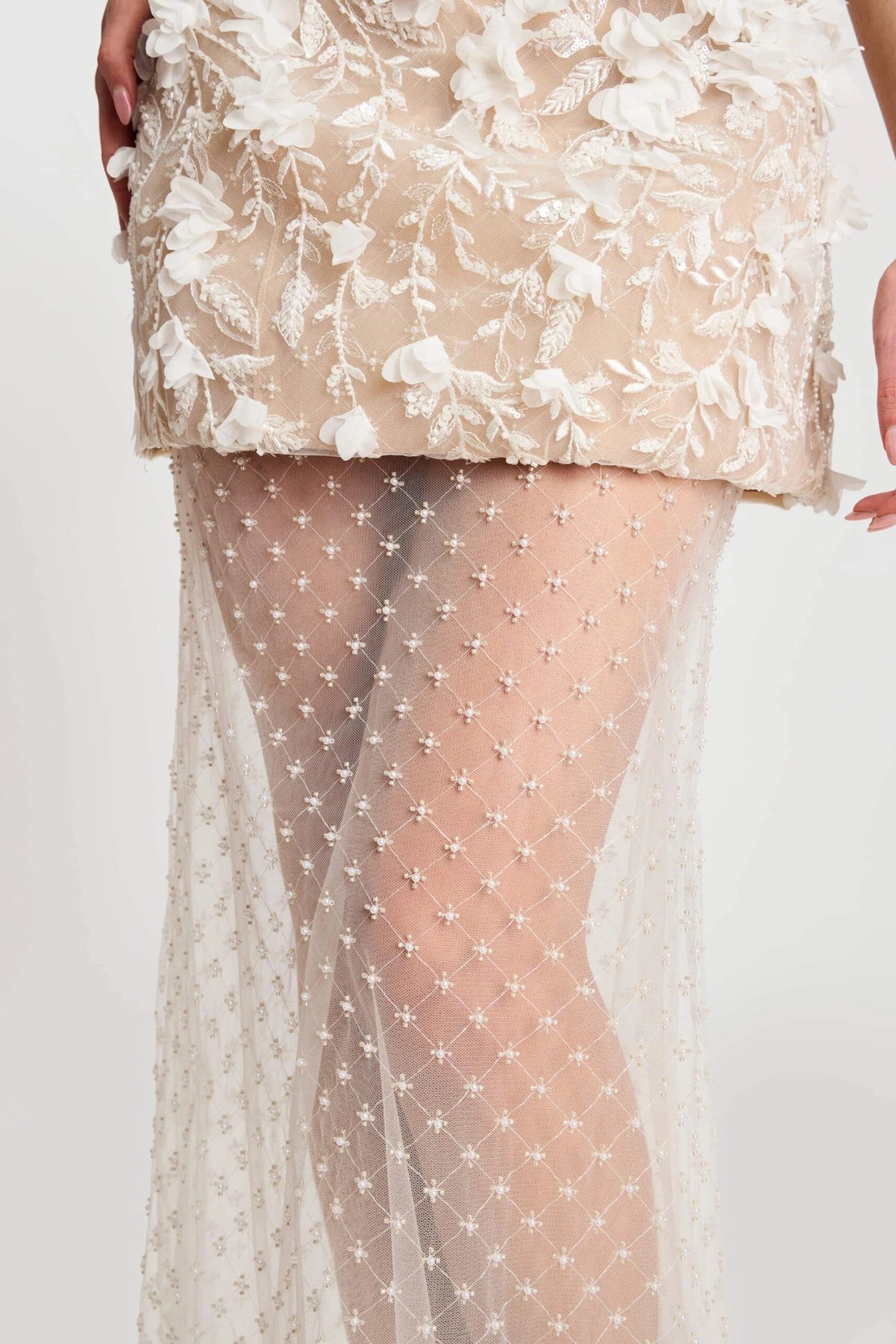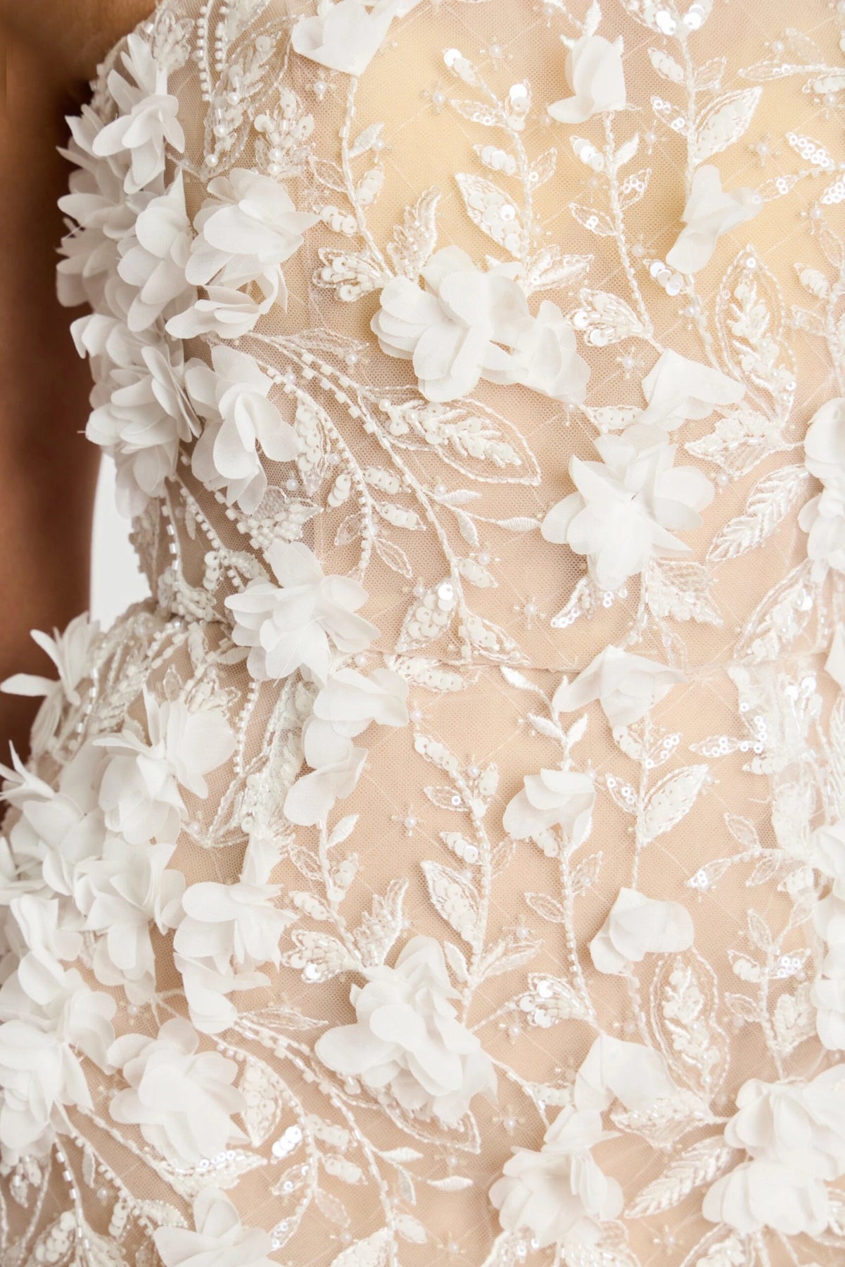 Mesmerize in the Jovani 45874 Dress, a strapless gown that's pure enchantment from every angle. Intricate 3D floral lace and delicate beading create a stunning visual feast that catches light beautifully as you move. This playful yet elegant design proves that whimsy and sophistication belong together, delivering a look that feels both timeless and refreshingly modern. Perfect for galas, proms, or any special occasion where you want to feel like the most radiant person in the room—this dress is your ticket to an unforgettable night filled with confidence and magic.