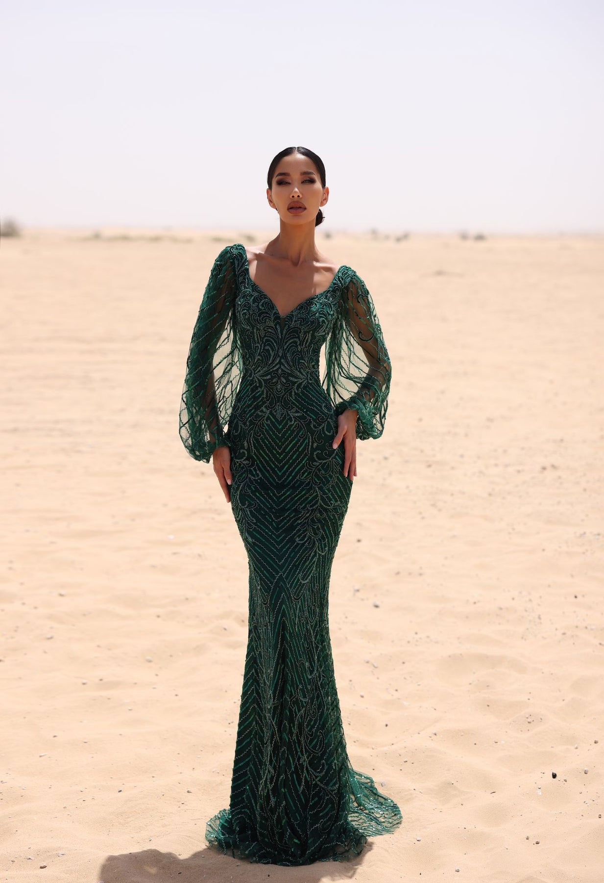 Elevate your evening game with this stunning beaded long dress that's pure sophistication wrapped in sparkle. The flattering V-neckline draws the eye while long sleeves add an air of refined elegance—perfect for those moments when you want to turn heads without trying too hard. Every bead catches the light as you move, creating an enchanting shimmer that whispers luxury. Whether you're heading to a gala, wedding, or special celebration, this dress transforms you into the most captivating person in the room. Timeless, glamorous, and undeniably chic.