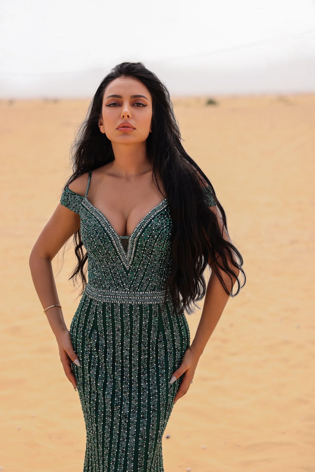 Slip into pure elegance with this stunning long beaded dress that's ready to turn heads at any event. The flattering V-neckline draws attention upward while the sleeveless cut keeps things breezy and sophisticated. Every inch shimmers with intricate beading that catches the light beautifully, creating an eye-catching sparkle as you move. Perfect for galas, weddings, or those moments when you want to feel absolutely fabulous. This dress proves that timeless glamour never goes out of style—because sometimes you just need to shine a little brighter.