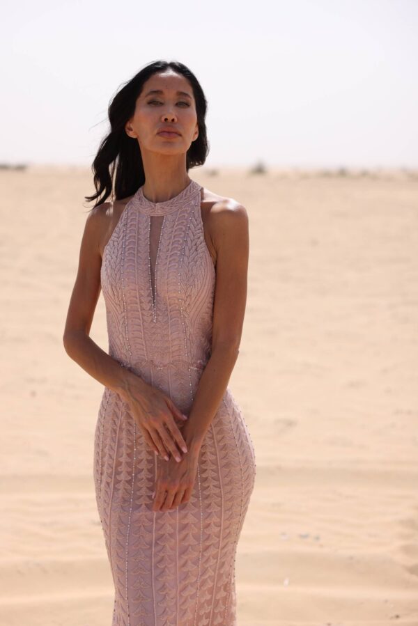 Elevate your evening game with this stunning beaded dress that's pure sophistication wrapped in sparkle! The high neckline keeps things classy and refined, while the sleeveless cut shows off your shoulders in all the right ways. But here's where it gets fun—flip around and reveal that gorgeous open back that'll have everyone talking. Every bead catches the light as you move, creating an enchanting shimmer that screams elegance without taking itself too seriously. Perfect for galas, weddings, or any occasion where you want to feel absolutely fabulous and unforgettably chic.