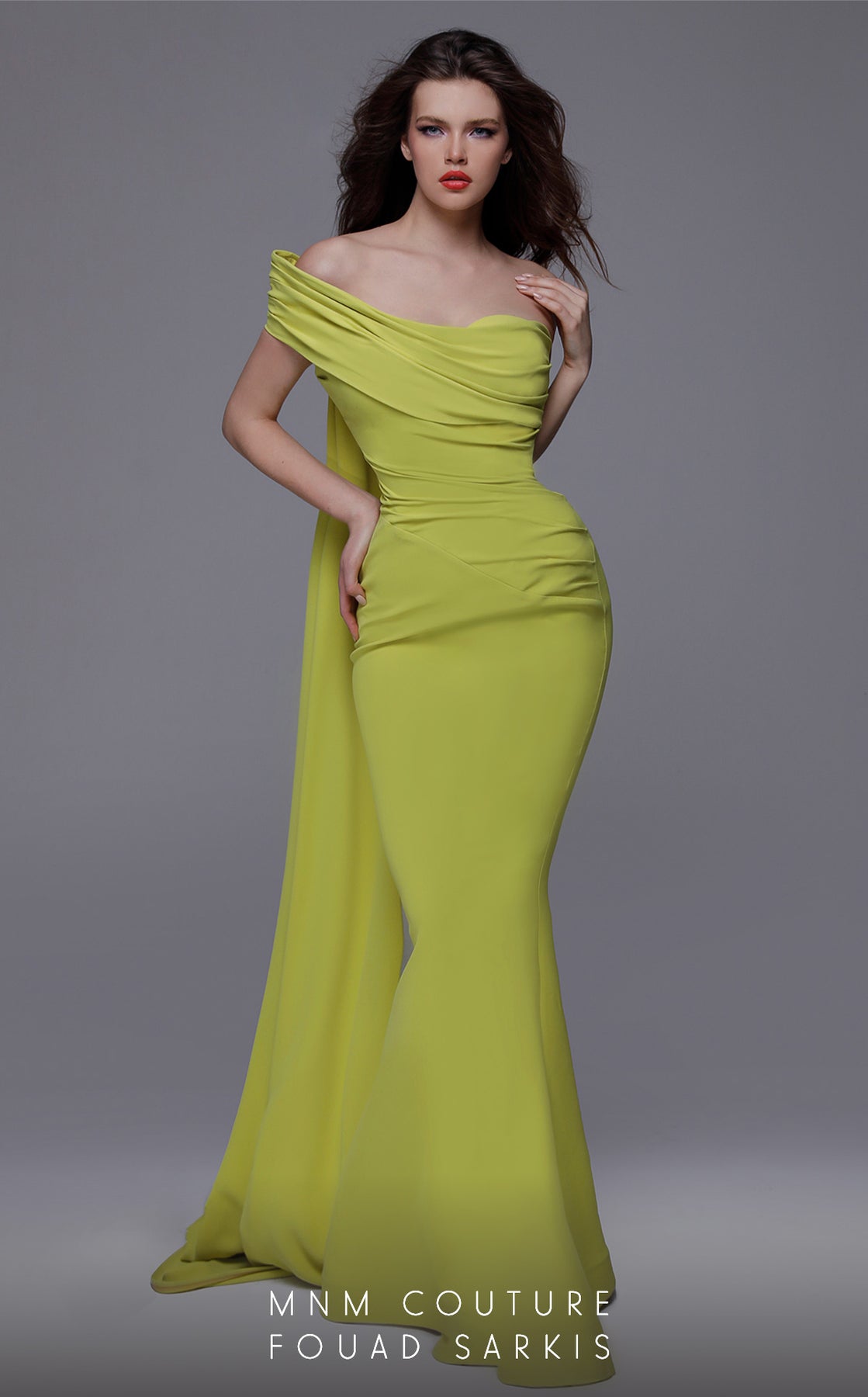 Grab the attention at your next event in this amazing gown by MNM Couture. Suitable as a bridesmaid dress with an extra classy twist.