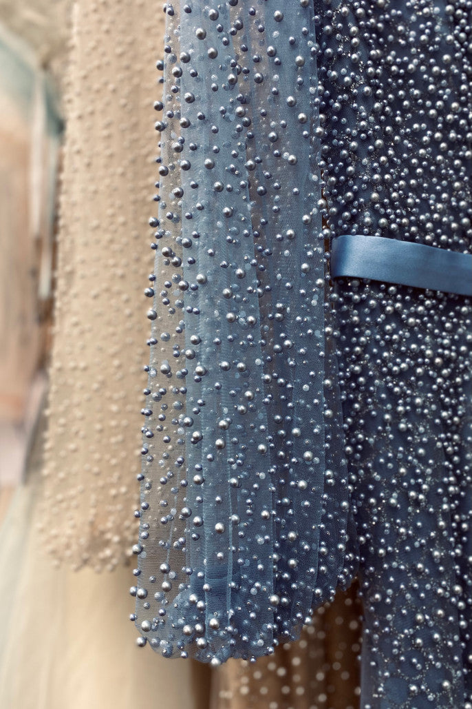 Get ready to turn heads in the playful and stunning ANDREA & LEO A0997 Dress. Adorned with pearls and glimmering accents, this dress features a fitted and flared silhouette with unique gathered sleeves and a detachable belt. Perfect for any special occasion, it's the perfect combination of elegance and fun!