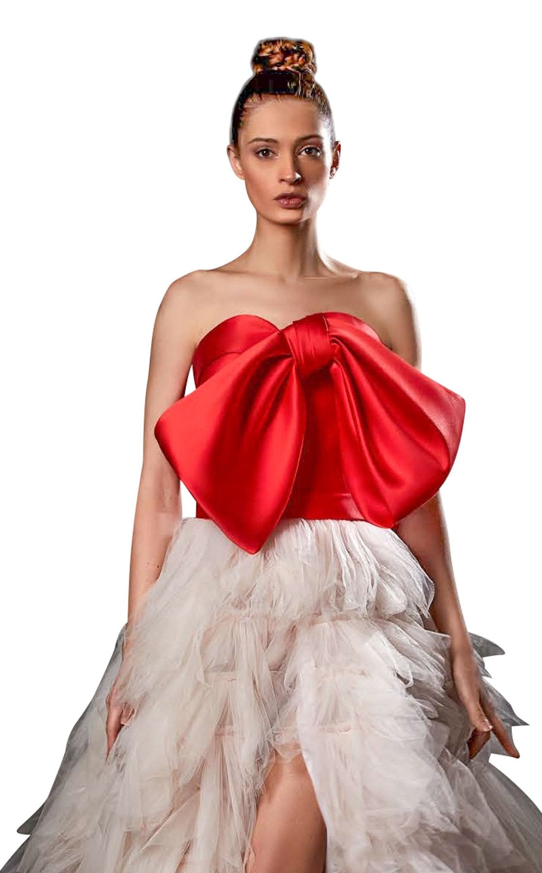 Step into the spotlight in the Ziad Germanos ZG18—where couture dreams come to life. This show-stopping evening gown features a graceful A-line silhouette crafted from sumptuous mikado and ethereal tulle that moves like magic. The strapless neckline beautifully frames your shoulders, while the playful high-low hem with a daring center slit keeps things flirty and fun. Romantic bow detailing adds that extra touch of charm, and the hidden zipper back ensures you look absolutely flawless from every angle. Perfect for making unforgettable moments even more memorable.