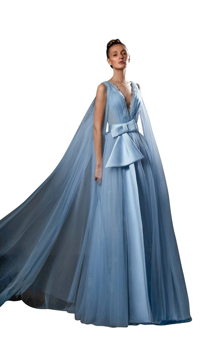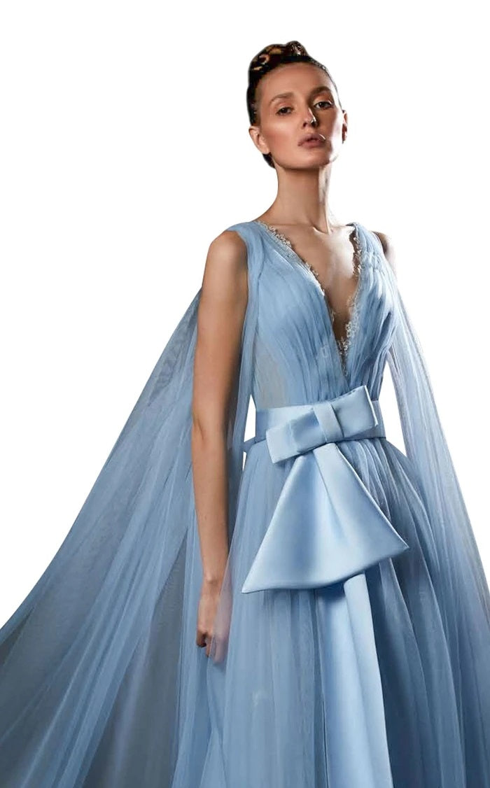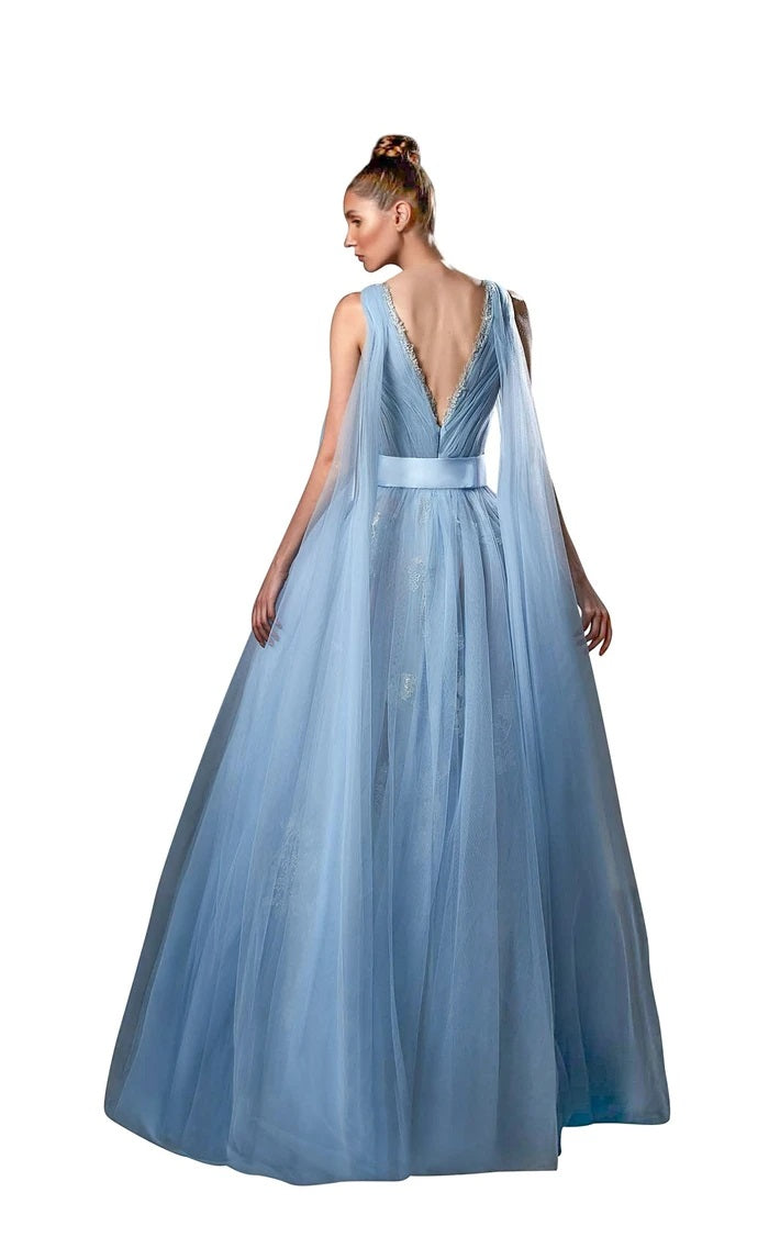Step into the spotlight in the Ziad Germanos ZG21—where couture dreams come true! This stunning A-line evening dress is pure magic, blending luxurious satin with ethereal tulle for a silhouette that moves as beautifully as you do. The daring plunging neckline and chic open back, finished with an elegant bow, strike the perfect balance between bold and refined. Sleeveless and sweeping to the floor, this gown is your ticket to turning heads and stealing hearts at every glamorous occasion. Because life's most fabulous moments deserve a dress that's just as unforgettable.
