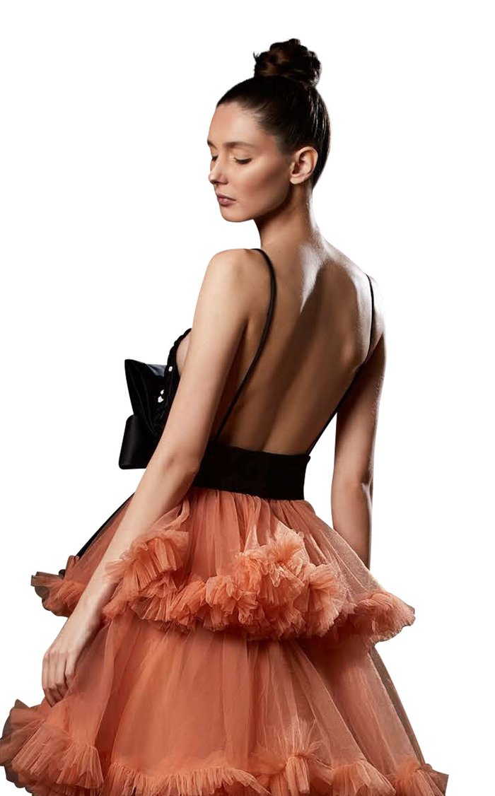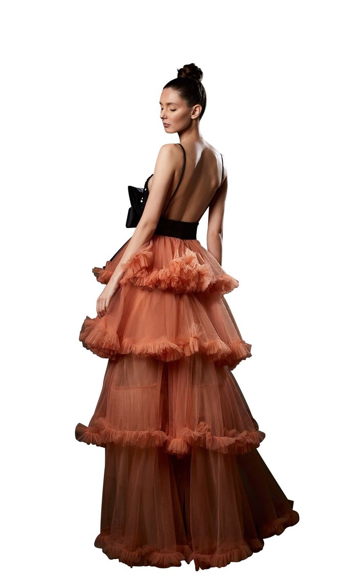 Step into the spotlight with the Ziad Germanos ZG61, where elegance meets pure magic. This stunning A-line gown floats in whisper-soft tulle, its tiered skirt dancing with every move you make. The daring plunging V-neckline and delicate straps frame your figure beautifully, while a cheeky bow detail adds just the right amount of sass. A hidden zipper back keeps everything perfectly in place so you can focus on having the time of your life. Perfect for those moments when you want to turn heads and feel absolutely fabulous.