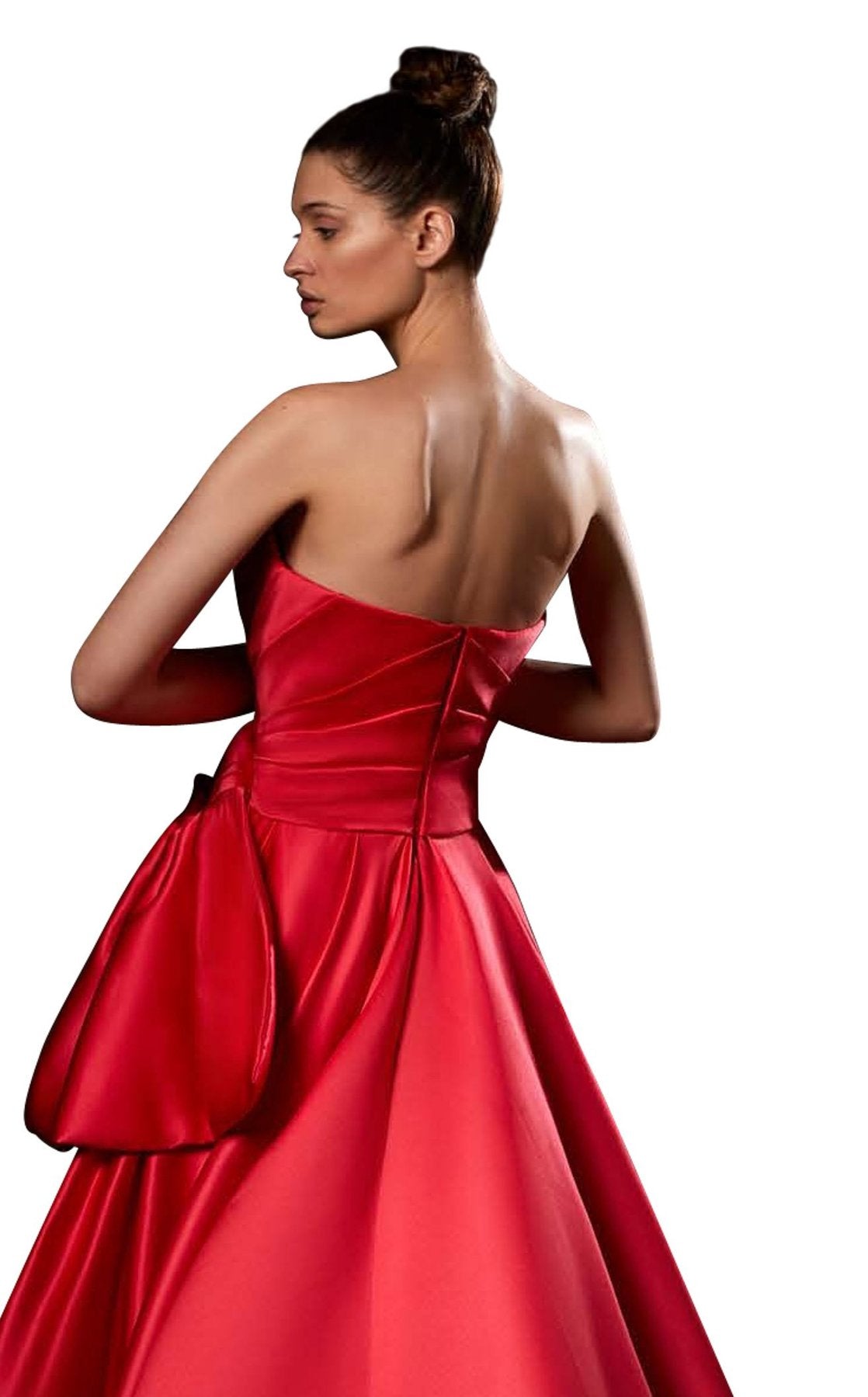 Prepare to turn heads in the Ziad Germanos ZG7—a satin evening dress that's basically a standing ovation waiting to happen. This strapless A-line beauty hugs you in all the right ways, while a charming bow at the waist adds that "I woke up like this" elegance. The side slits? They're your secret weapon for looking effortlessly chic while actually being able to move. Luxuriously smooth satin feels incredible against your skin, making you feel like the main character at any event. Perfect for those "I need to look absolutely stunning" moments—whether it's a gala, wedding, or any occasion that demands pure glamour with a playful edge.