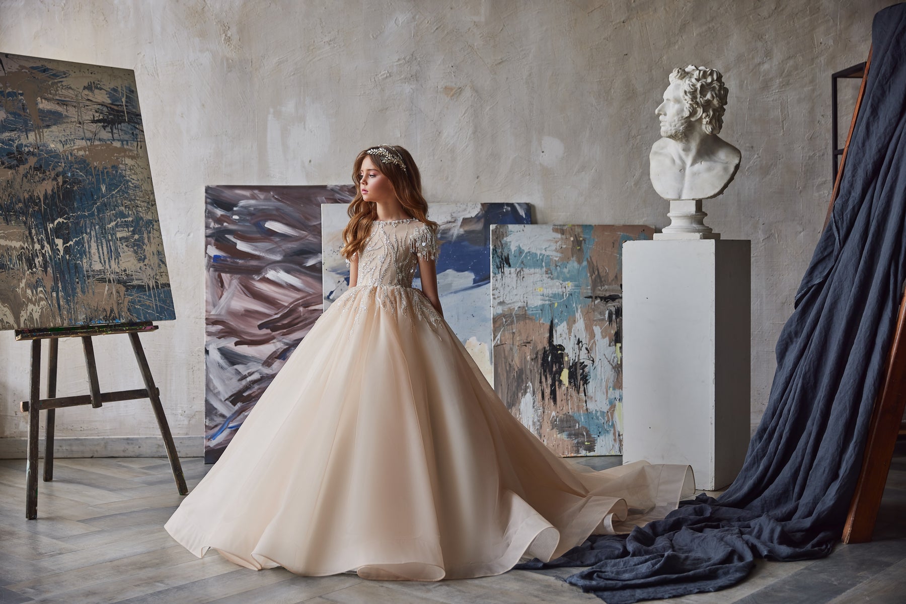 Introducing the Pentelei 3222, the perfect dress for your little girl. This beautiful dress is perfect for special occasions, with its long flowing skirt and short capped sleeves. It's even adorned with delicate embroidery, making it a real standout piece. Your little one is going to love feeling like a princess in this stunning dress.