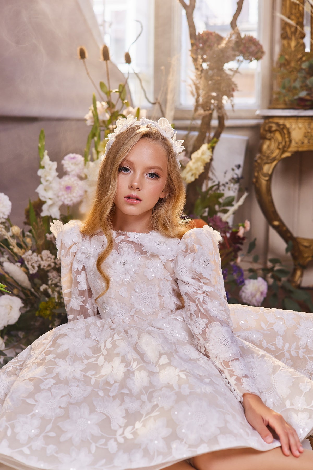 Add a touch of cuteness to your little one's wardrobe with our Pentelei 3427 kids dress. Featuring delicate embroidery and a twirl-worthy design, this short-sleeved dress is perfect for any flower girl. Watch her glow with joy in this adorable outfit.