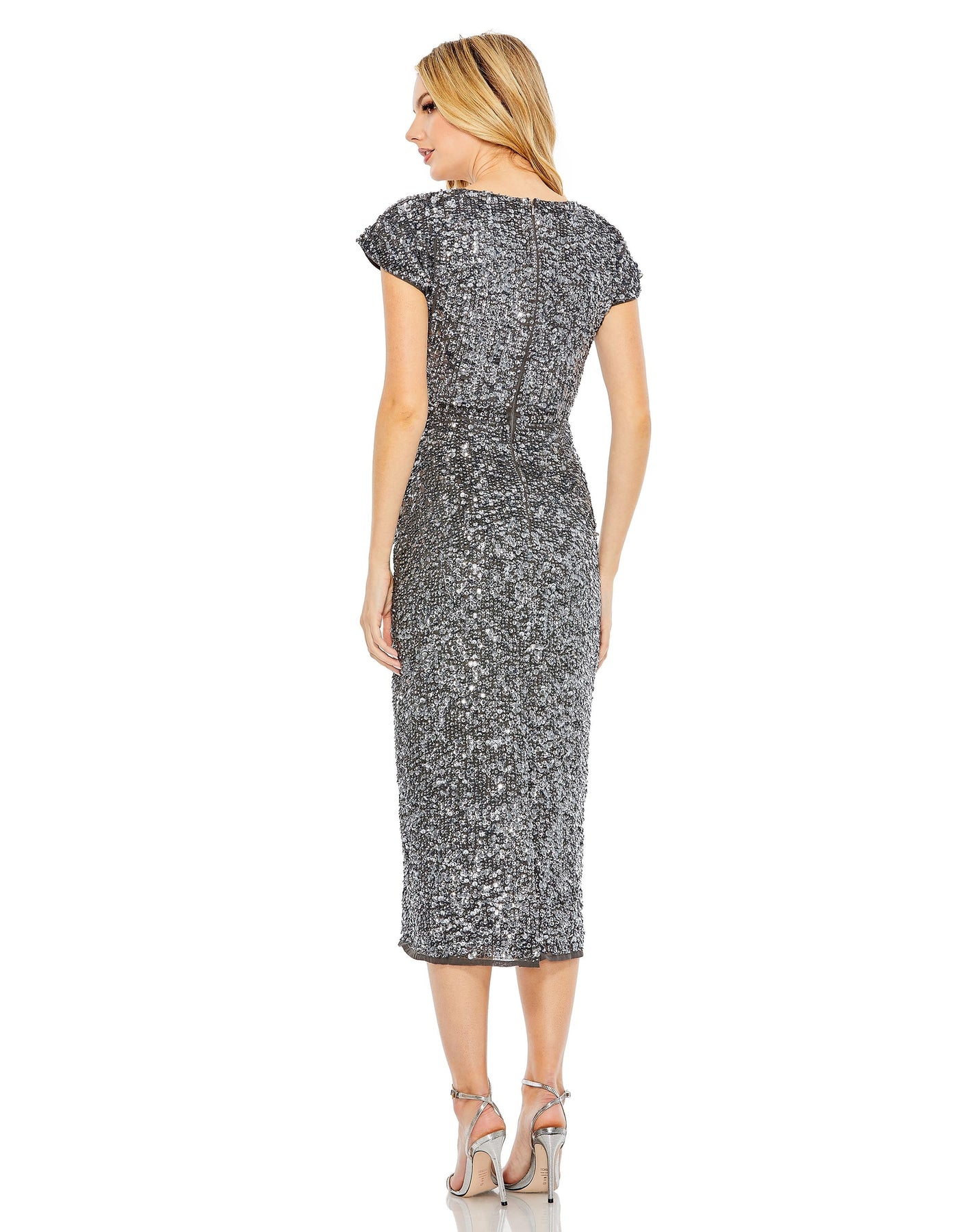 Dazzle and shine in the Mac Duggal 10766 Dress. This sequined wrap over cocktail dress adds an unexpected twist to your wardrobe. The v-neck and short sleeves provide a flattering fit, and the concealed back zipper ensures a seamless look. Available in multiple colors, this dress is perfect for any occasion.
