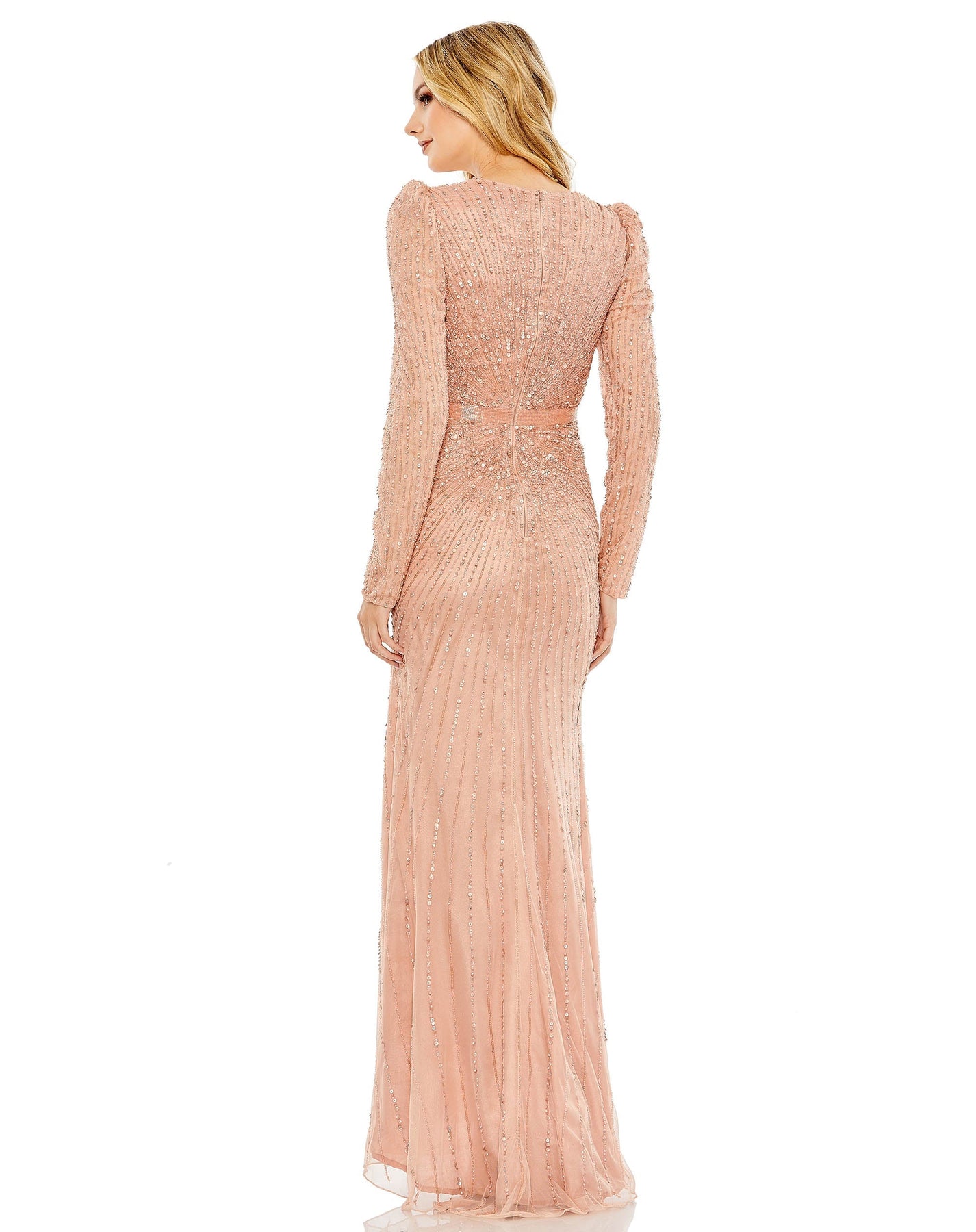- Fully lined through bodice and skirt; sheer unlined sleeves