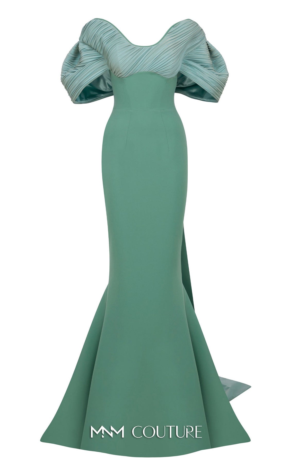 This MNM Couture E0088 Dress is a stunning choice for your next evening event. The dress features an off-shoulder neckline and a mermaid silhouette, creating a sophisticated and elegant look. The open back adds a touch of glamour, making this dress a show-stopping option. Perfect for any formal occasion.