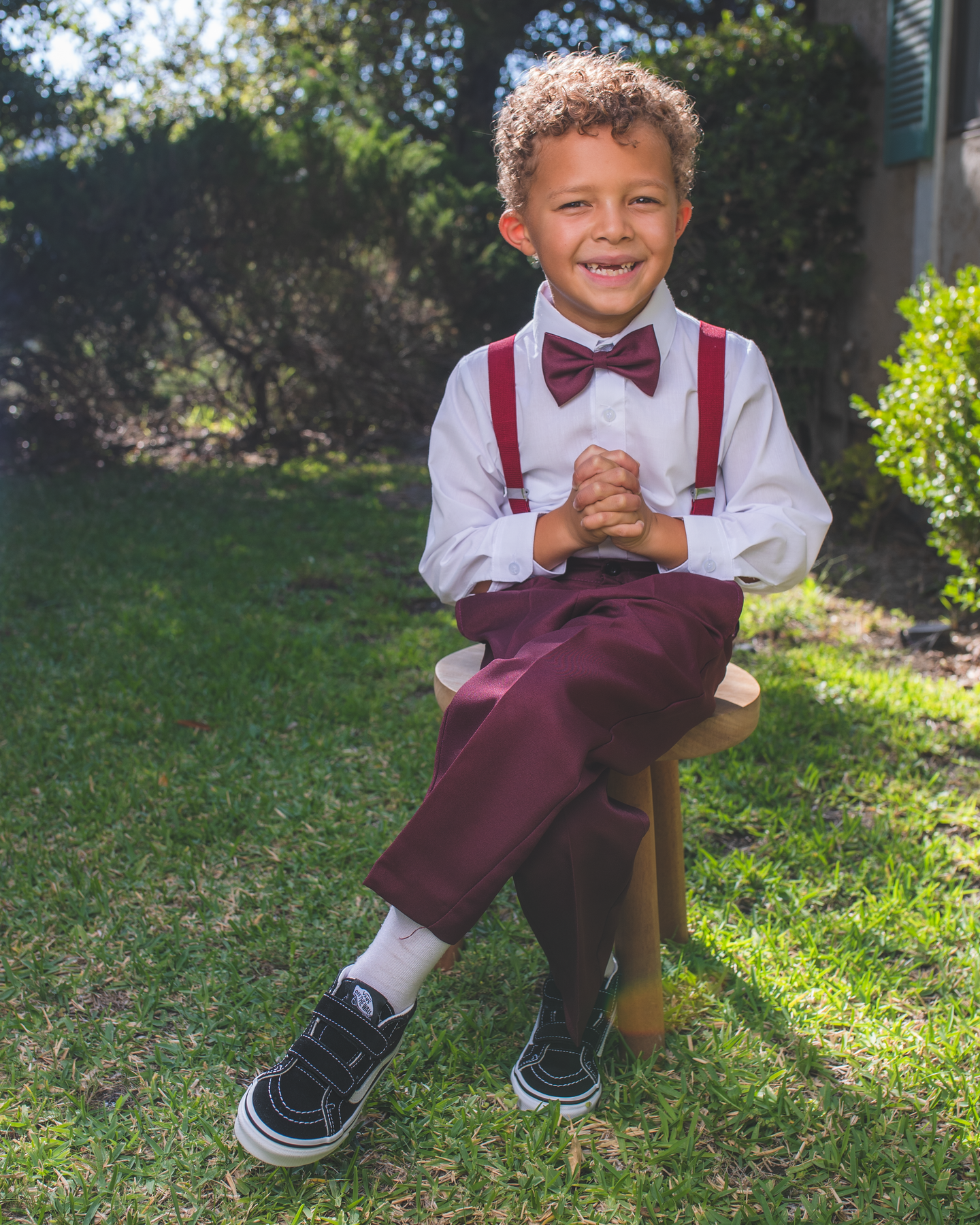 Introduce your little one to timeless elegance with the Peanut Butter Collection Barn Wedding Set in Burgundy. This complete formal ensemble features a coordinated shirt, pants, suspenders, and bow tie—everything needed for ring bearers and special occasions. Crafted from durable 100% polyester, the set offers comfort and easy care for active children. The thoughtful design accommodates various body types, ensuring a flattering fit for your child's big moment. Perfect for weddings, celebrations, and formal events where your child deserves to shine.