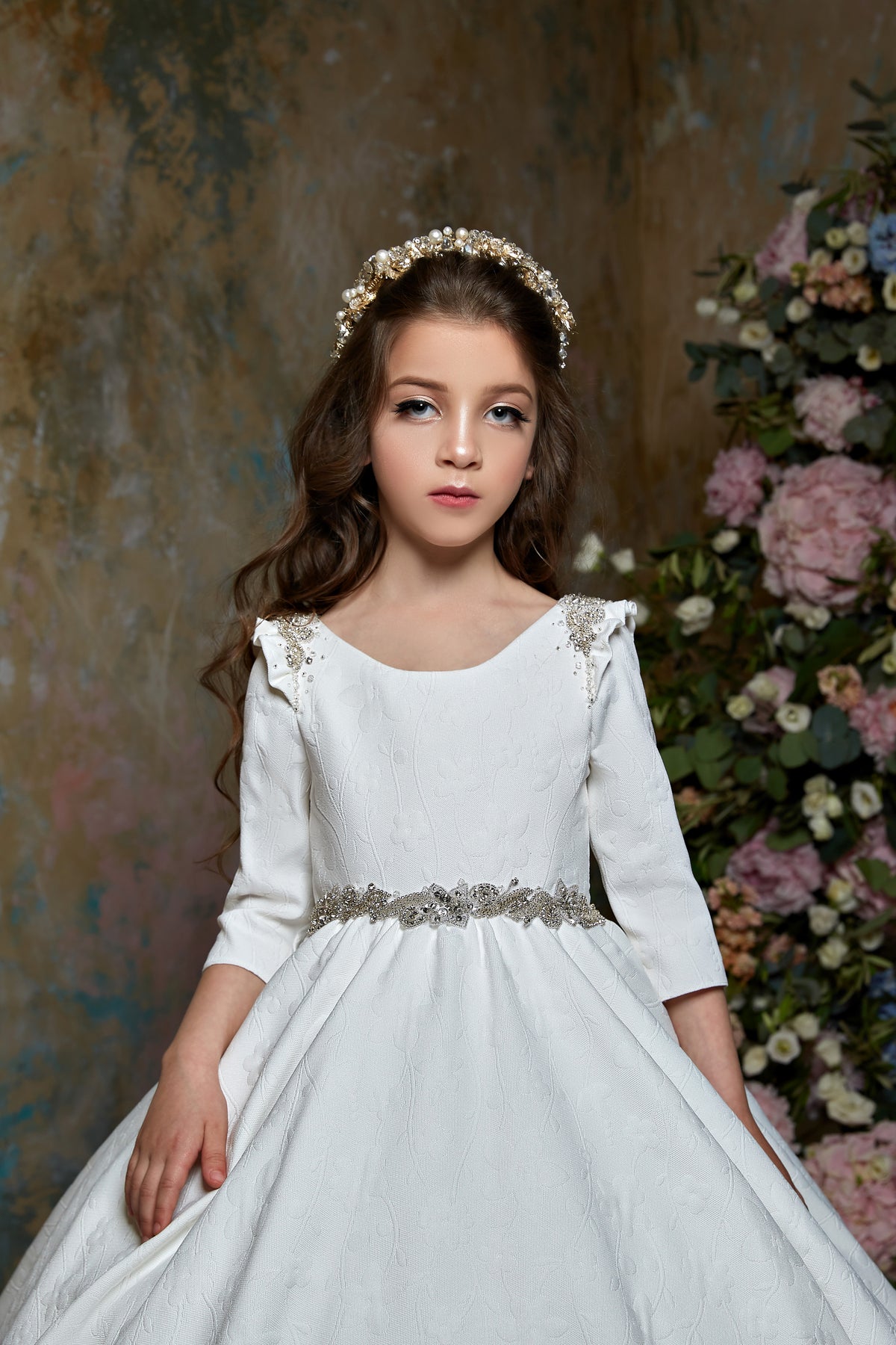 Make your little one feel like royalty in this Pentelei 2353 dress. This long ballgown features a beautiful panel detailing and color that's ideal for special occasions or events. Perfect for bringing out your little princess' sophisticated and graceful charm! The dress is designed with long sleeves to keep her comfortable throughout the day. With its classic cut, this dress will make any young girl feel like royalty.