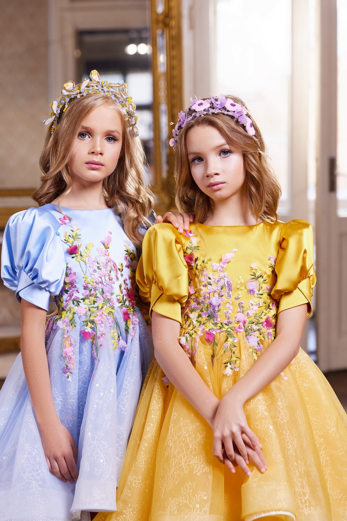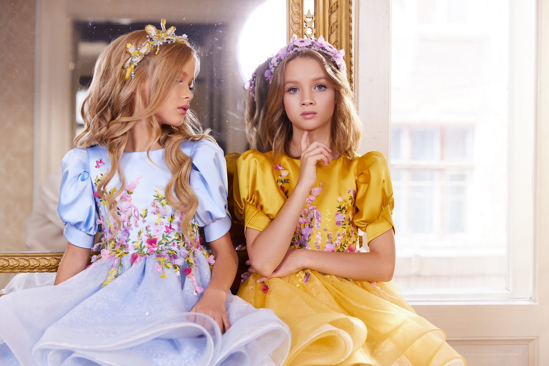 Capture your little girl's inner princess with this shimmering dress. This festive dress is perfect for special occasions and pictures. With beautiful flowers details and high low style, your little one will look like a true Pentelei princess. Your little one will love twirling and dancing in this pretty dress.