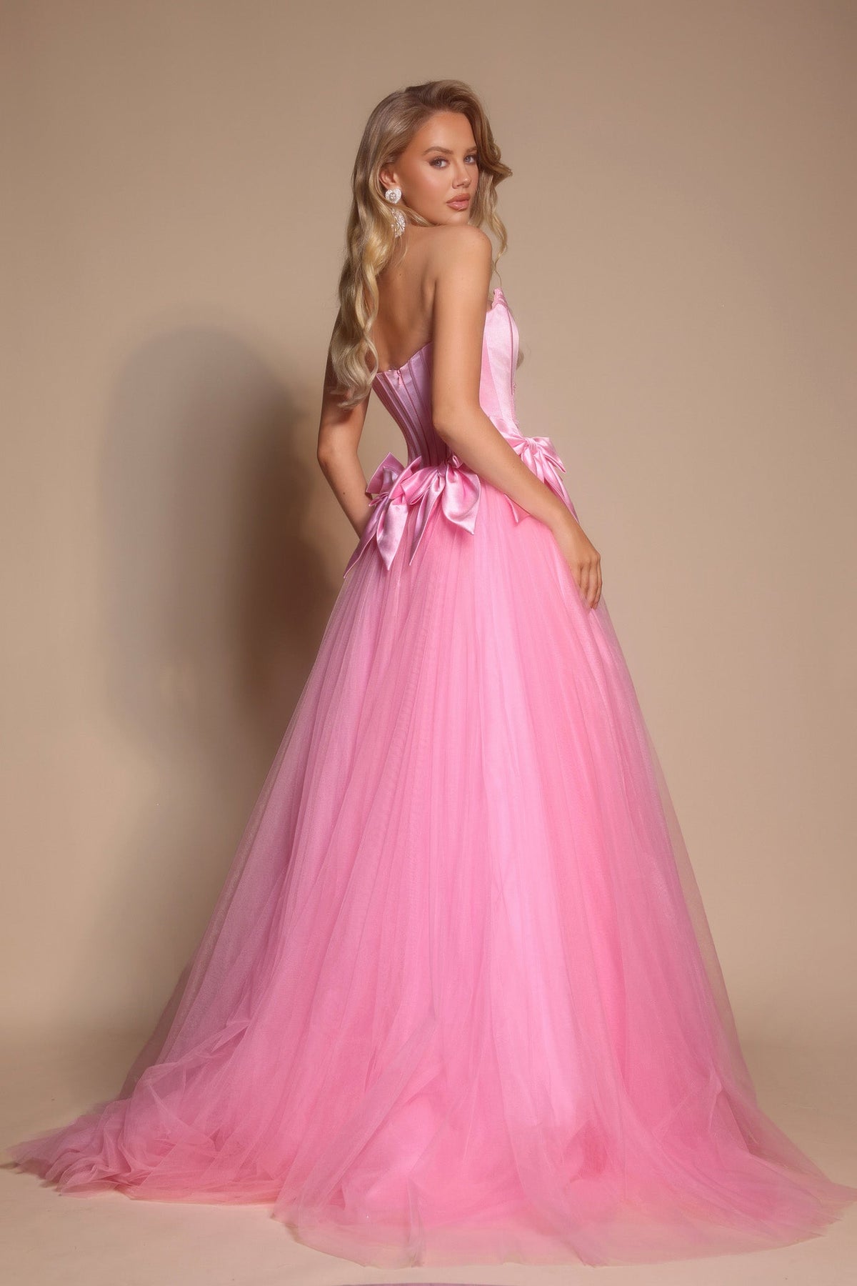 Turn heads with this playful yet elegant long dress crafted from delicate tulle. Its straight-across neckline highlights your collarbone, while the open back adds a flirty touch. Perfect for any special occasion, this dress blends cute charm with graceful sophistication for a memorable look.