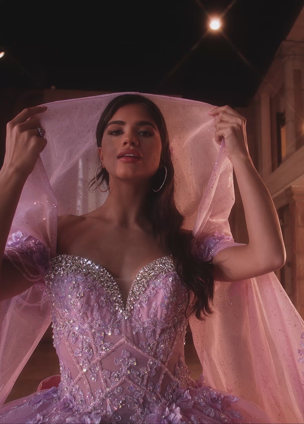Step into a fairytale with the Rachel Allan RQ1166 Dress, where princess charm sparkles from every bead and pastel appliqué. Delicate 3D flowers add a whimsical touch, while the glitter tulle skirt floats gracefully, complete with a detachable train for dramatic entrances. The sculpted bow and sheer detachable sleeves let you play with your look, making this gown perfect for quinceañeras or any fantasy celebration ready to steal the spotlight.