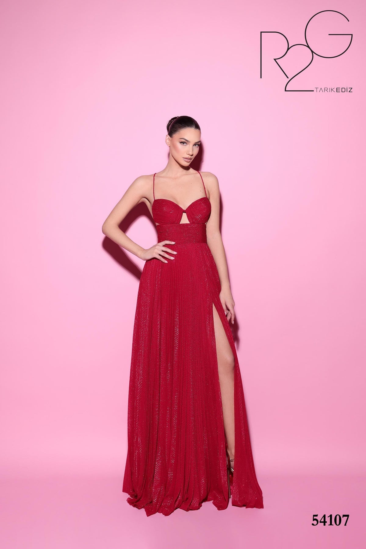Introducing the must-have dress of the season: Tarik Ediz 54107! From the Fall 2024 evening collection, this dress is made with Glitter Jersey fabric for a stunning, glamorous look. Don't miss out on the chance to sparkle and shine in this show-stopping piece!
