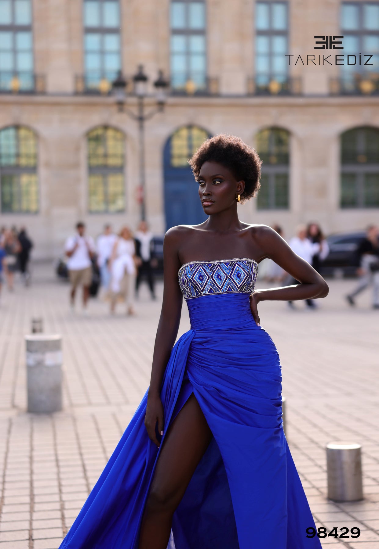 As an industry expert, the TARIK EDIZ 98429 Dress features a stunning satin material, a long slit for added elegance, and a top neckline adorned with exquisite beading. Perfect for prom or evening events, its open back and long extension on the side provide the ideal mix of style and comfort.