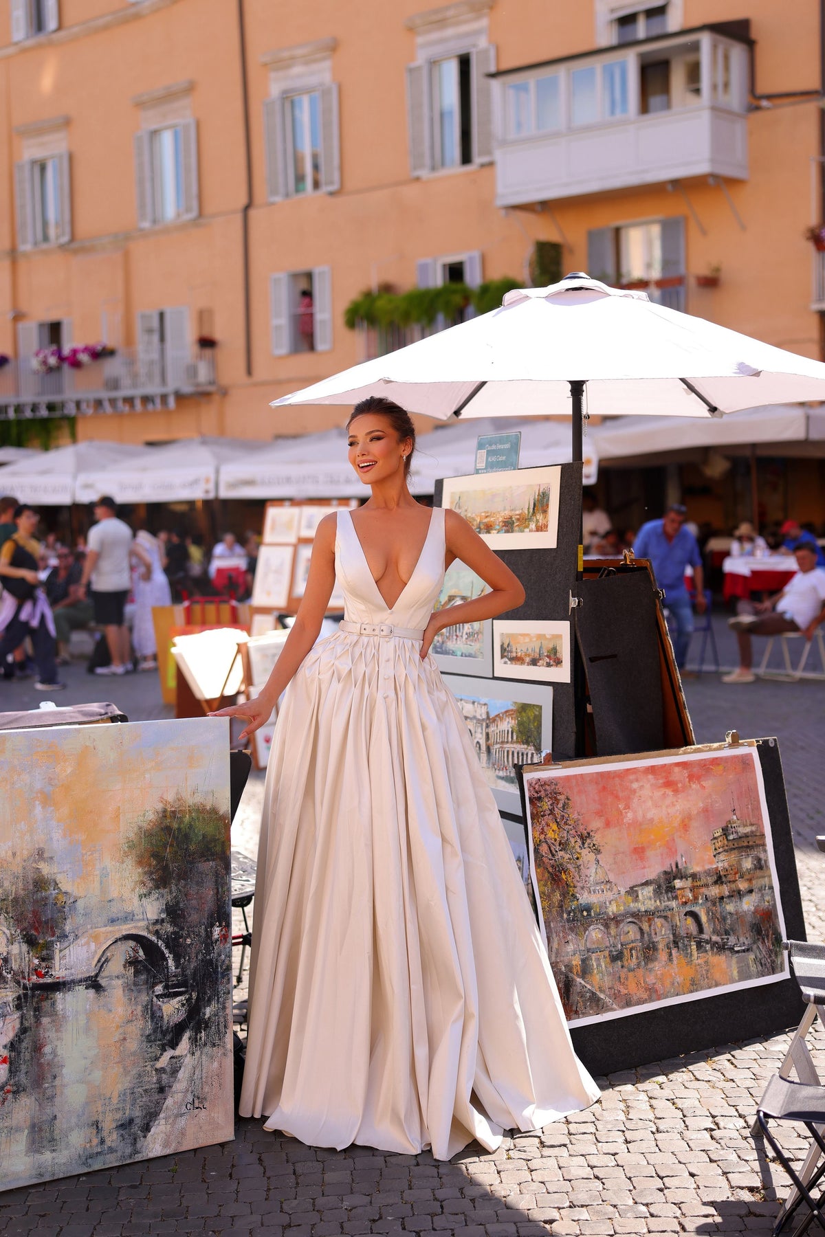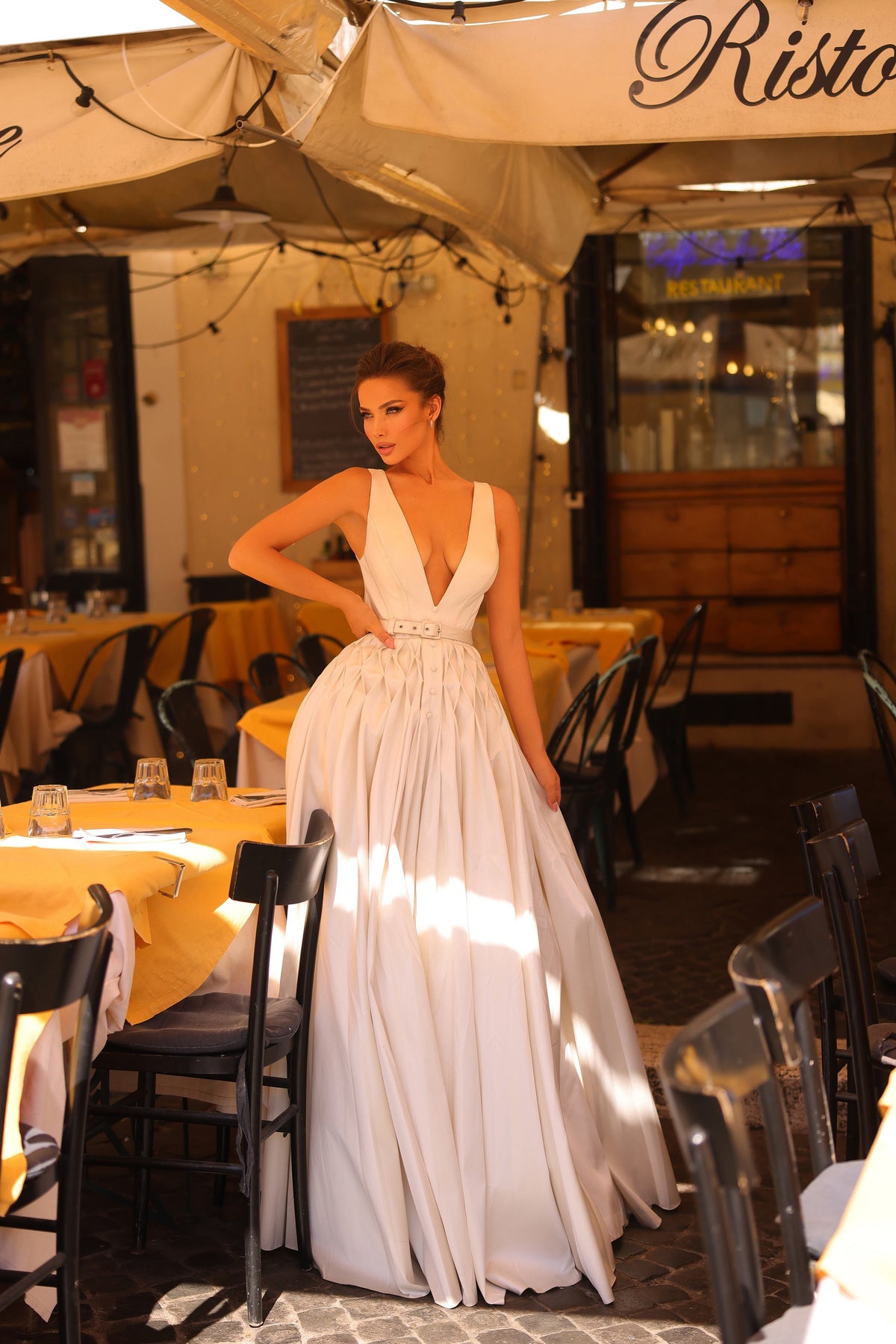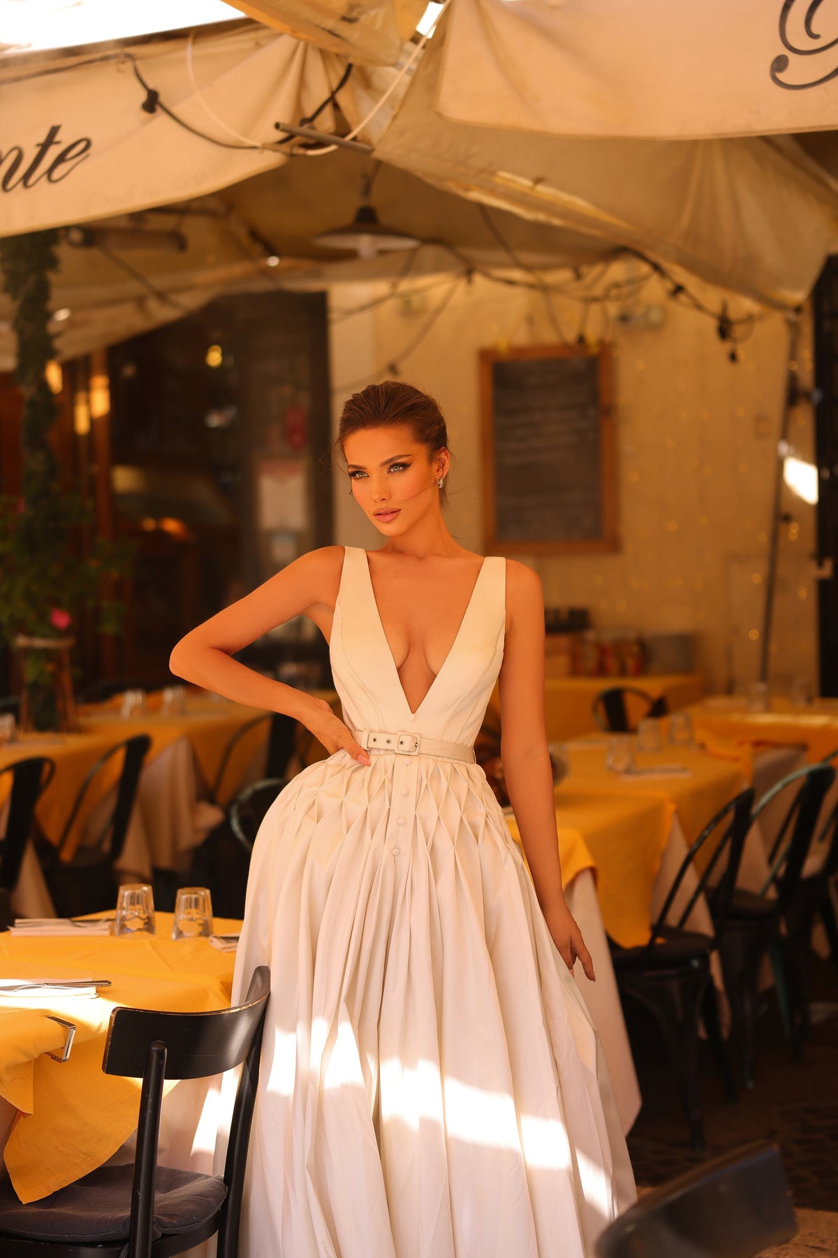 Be the belle of the ball in Tarik Ediz's 98732 Dress. The v neckline and sleeveless design add a touch of elegance, while the ball gown silhouette will make you feel like royalty. Perfect for any special occasion.