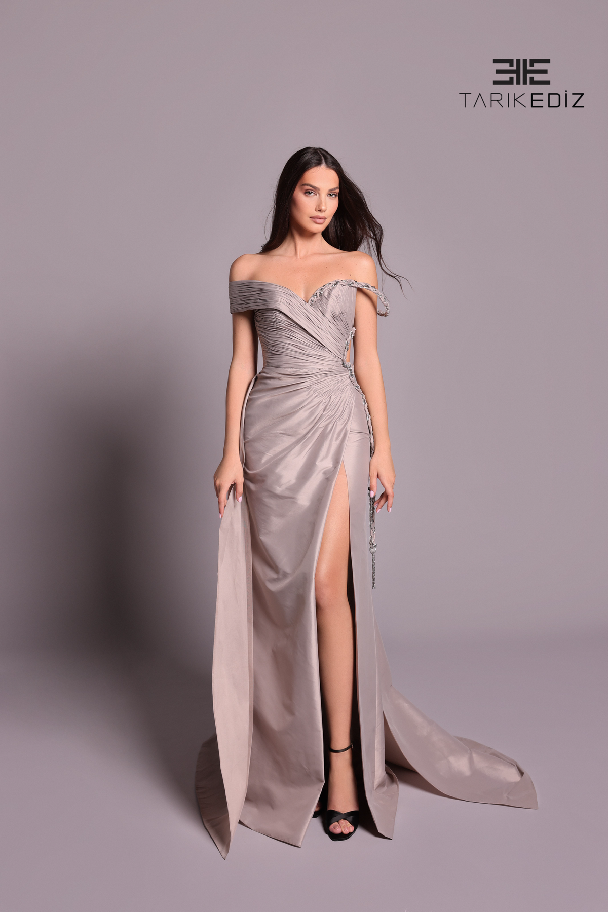 Elevate your evening with the Tarik Ediz 99108 dress, a stunning long gown designed to captivate. Its elegant off-shoulder neckline and sweet heart bodice highlight your décolletage, while the sleeveless cut adds a flattering, modern touch. A daring high slit enhances both movement and allure, blending sophistication with a cute, stylish edge. Perfect for making a lasting impression at any special occasion.